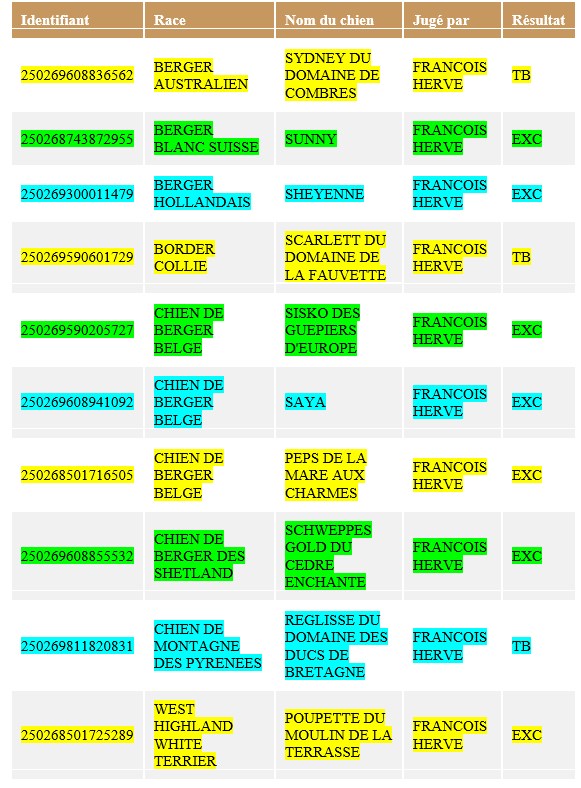 10 chiens participaient à cette épreuve. Tous ont été reçus.